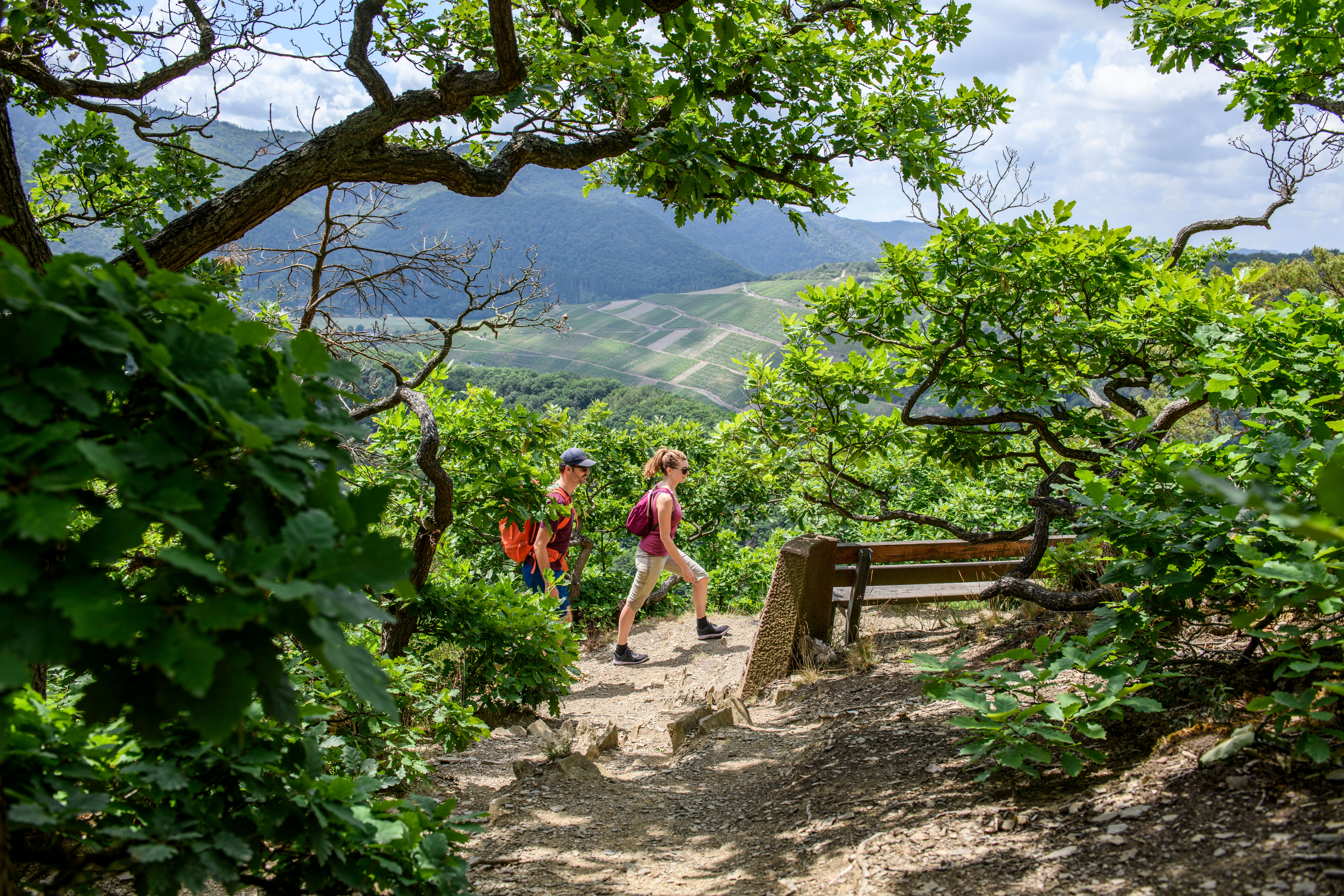 Sportliches Wandern mit herrlichen Ausblicken auf sieben Etappen – So könnte man den AhrSteig mit wenigen Worten charakterisieren. Denn auf rund 100 Kilometern erleben Naturfreunde hier alles, was das Wanderherz höher schlägen lässt: weite Ausblicke über Wiesen und Wälder, idyllische Talauen, einsame Hochplateaus, dramatische Felszacken, alpin anmutende Pfade und lebendige Winzerorte. Burgruinen thronen über steilen Weinbergsterrassen, auf schmalen Steigen geht es zu Gipfelkreuzen und Aussichtstürmen. Liebenswerte Gastgeber machen deine Wander-Auszeit im Ahrtal perfekt.