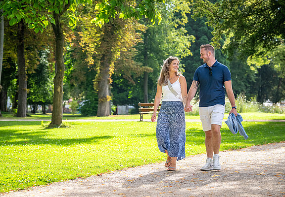 Mit seinen zahlreichen Sitz- und Liegemöglichkeiten ist der Kurpark der