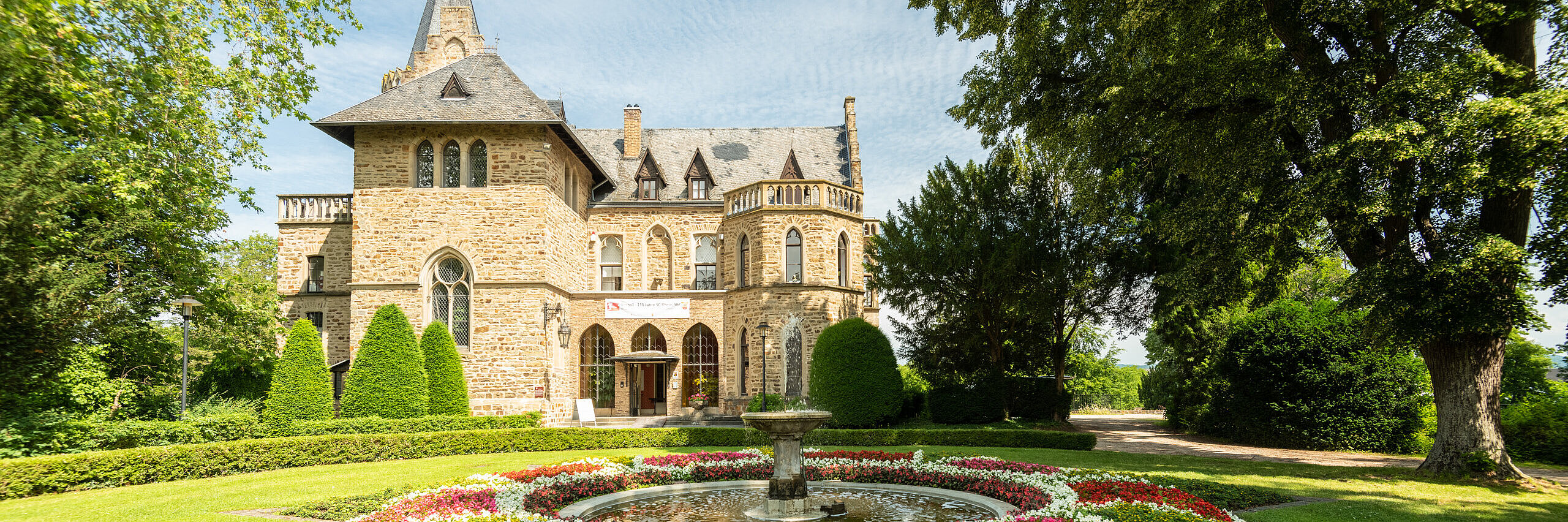 In den Jahren von 1854 bis 1858 wurde nach den Plänen des Architekten Vincenz Statz ein neugotischer Bau in Schiefer-Bruchstein-Mauerwerk als Sommersitz für den Kölner Kaufmann Gustav Bunge errichtet. Bunge hatte das Grundstück 1850, im Jahr seiner Heirat mit Adele Andreae, gekauft. Noch heute zieren seine Initialen die Wetterfahne auf der Turmspitze des sogenannten Schlosses. Der Historienmaler Karl Christian Andreae, ein Schwager von Bunge, malte das Innere des Schlosses kunstvoll aus. Als eine der letzten Erben der Familie vermachte Johanna Adele von Wedderkop 1954 das markante Gebäude der Stadt Sinzig.