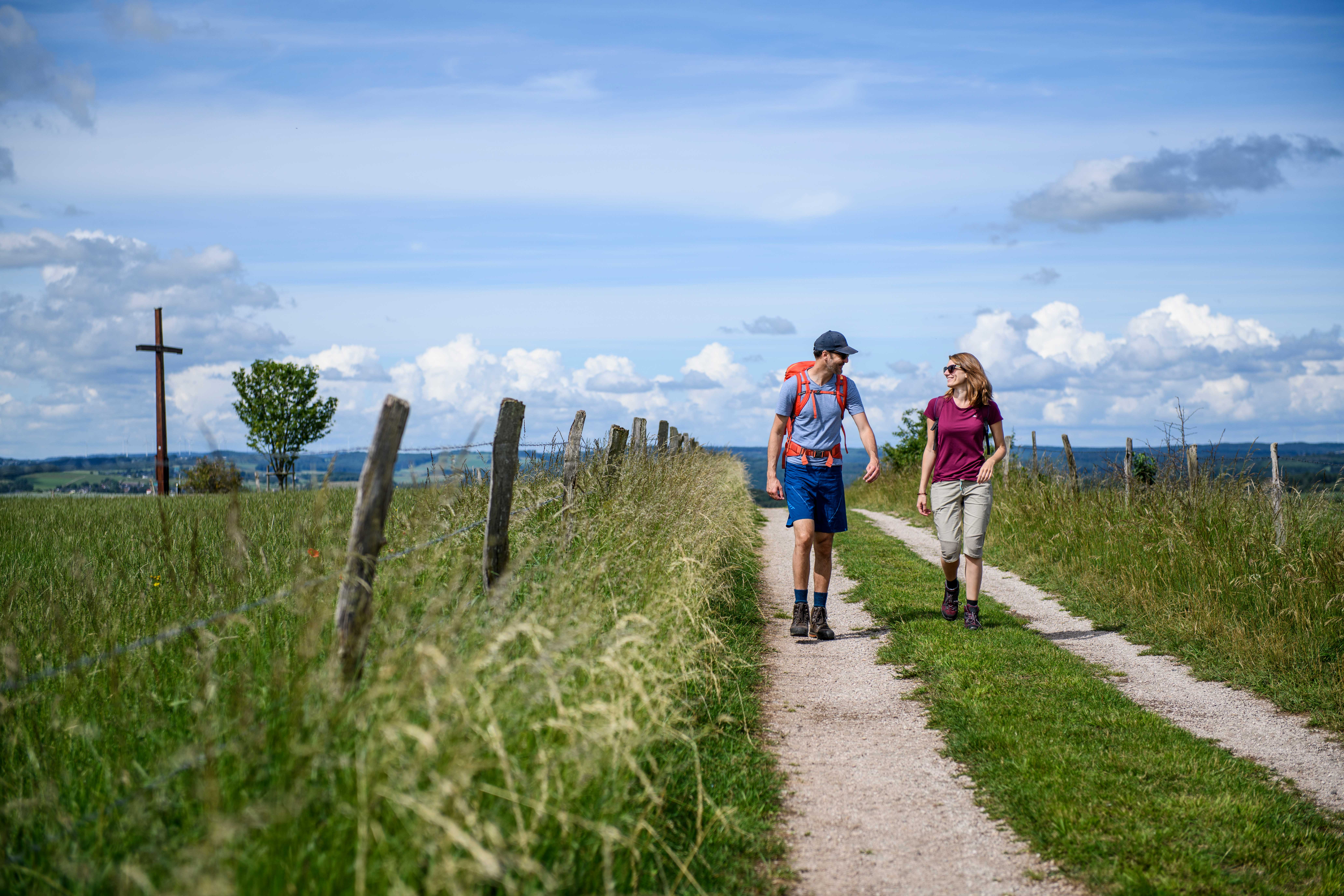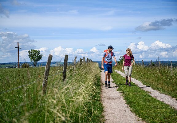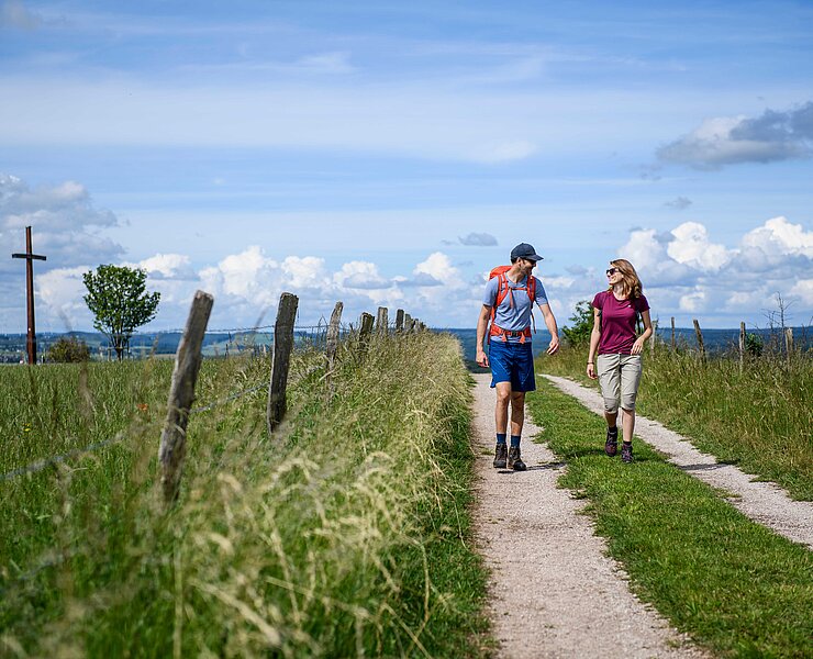 Markanter Blickfang auf dem Hühnerberg: das Friedenskreuz, das 1945 als Dank an die Bewahrung der Heimat während des Zweiten Weltkieges errichtet wurde.