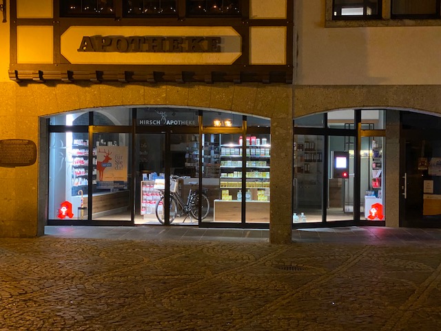 Die Hirsch‑Apotheke, zentral gelegen am Marktplatz 6 in Bad Neuenahr‑Ahrweiler, ist eine moderne Apotheke mit umfassendem Service und persönlicher Betreuung. Seit der Rückkehr zum Traditionsstandort im Oktober 2019 gehört sie zu den Anlaufstellen für alle Gesundheitsfragen in der Innenstadt.