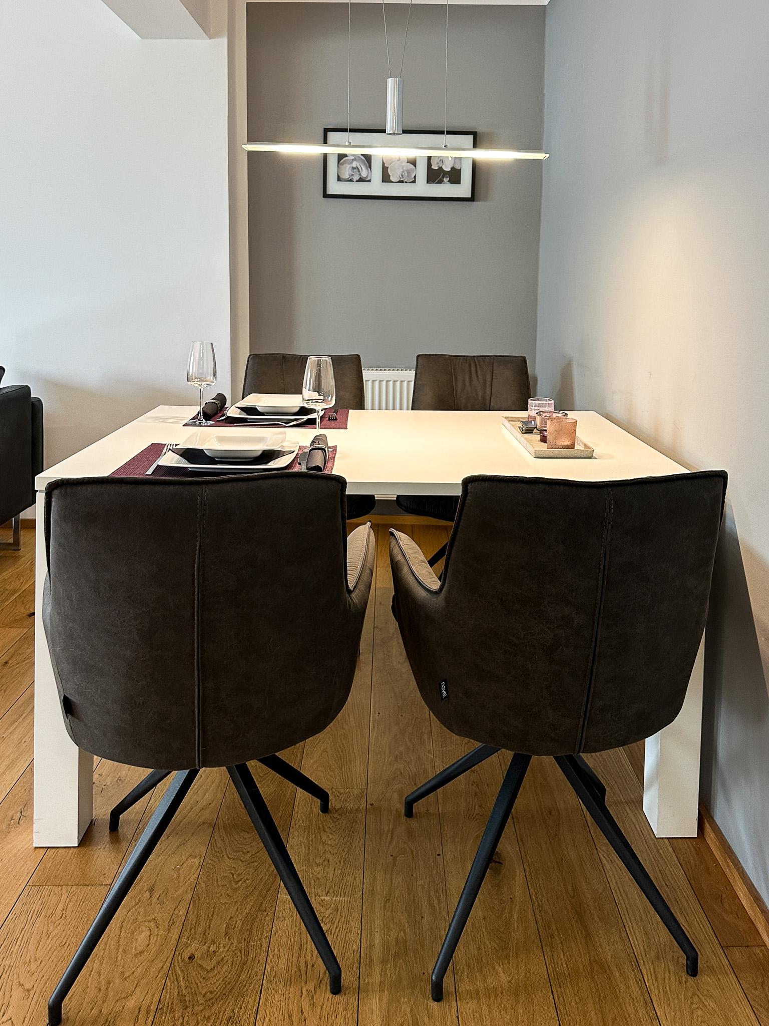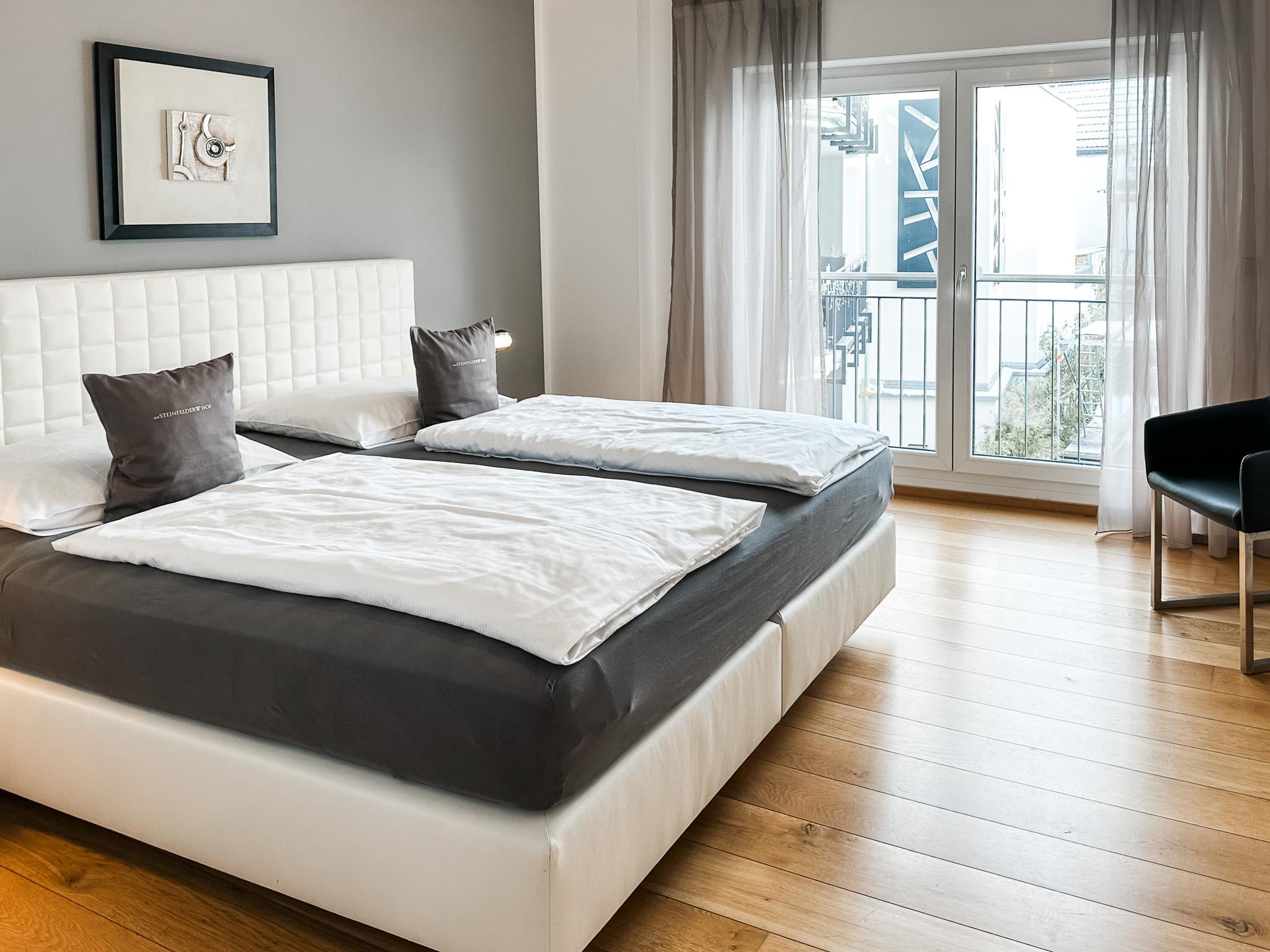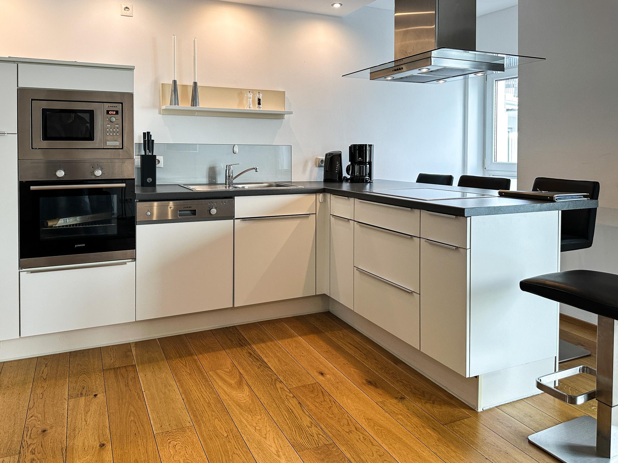 Unsere Ferienwohnungen zeichnen sich durch klare, offene und moderne Formen, überproportionale Größe und trendige, geschmackvolle Einrichtung aus. Sie wohnen ruhig, dennoch zentral innerhalb der historischen Stadtmauer. Es erwarten Sie bequeme Komfort-Boxspringbetten, große Badezimmer mit Tageslicht, voll ausgestattete Küchen mit Ceranfeld-Herd, Backofen, Mikrowelle und Spülmaschine sowie moderene Technik mit 4K Smart TV mit Wifi, DVD, CD, Radio und freies highspeed Wifi. 8 Wohnungen verfügen über eine Garage oder einen Parkplatz am Haus.