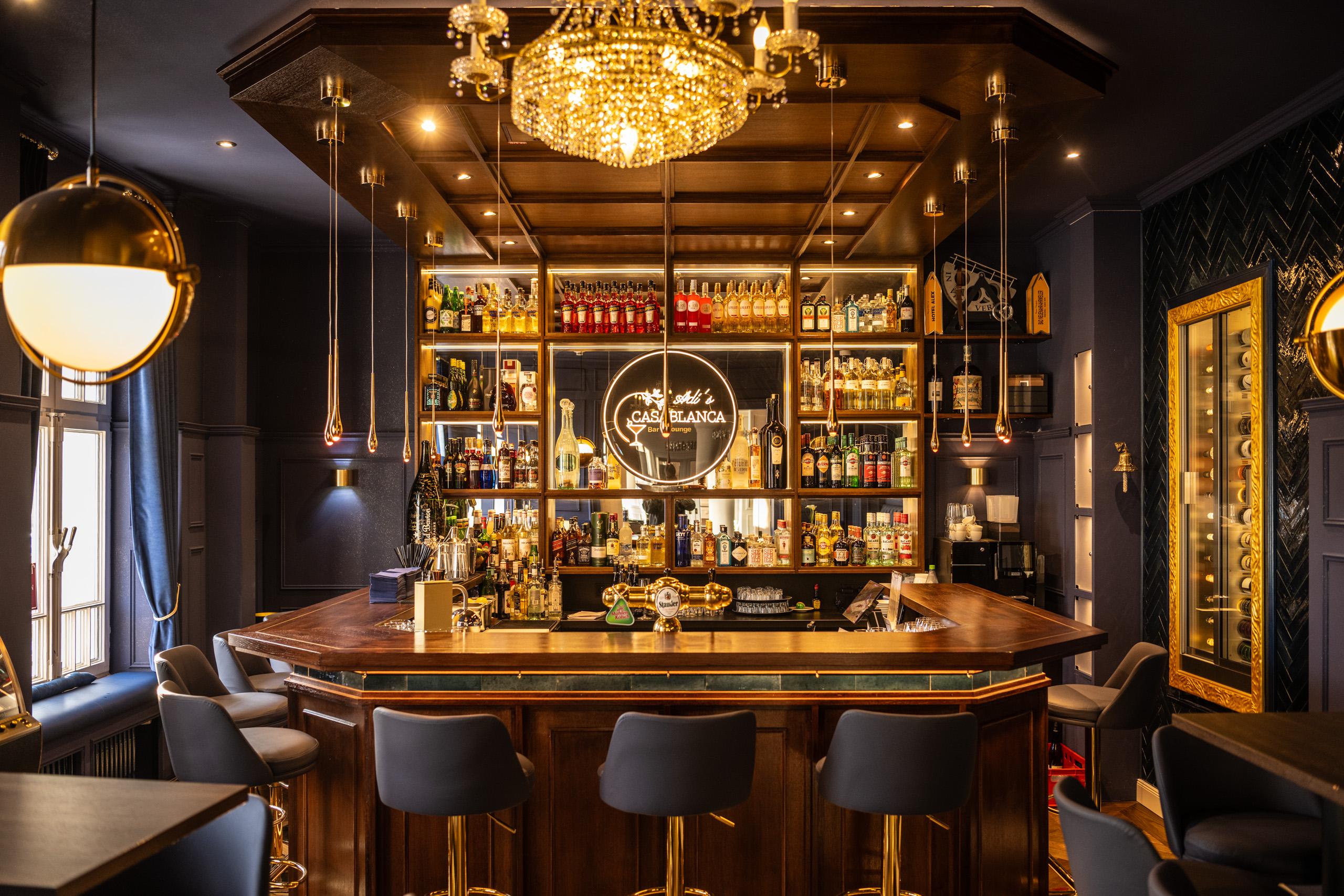 Am Abend erwartet Sie unsere stilvolle Hotelbar Adi’s Casablanca (geöffnet Dienstag bis Samstag), ein Ort für gute Gespräche, ausgewählte Drinks und eine entspannte Atmosphäre.