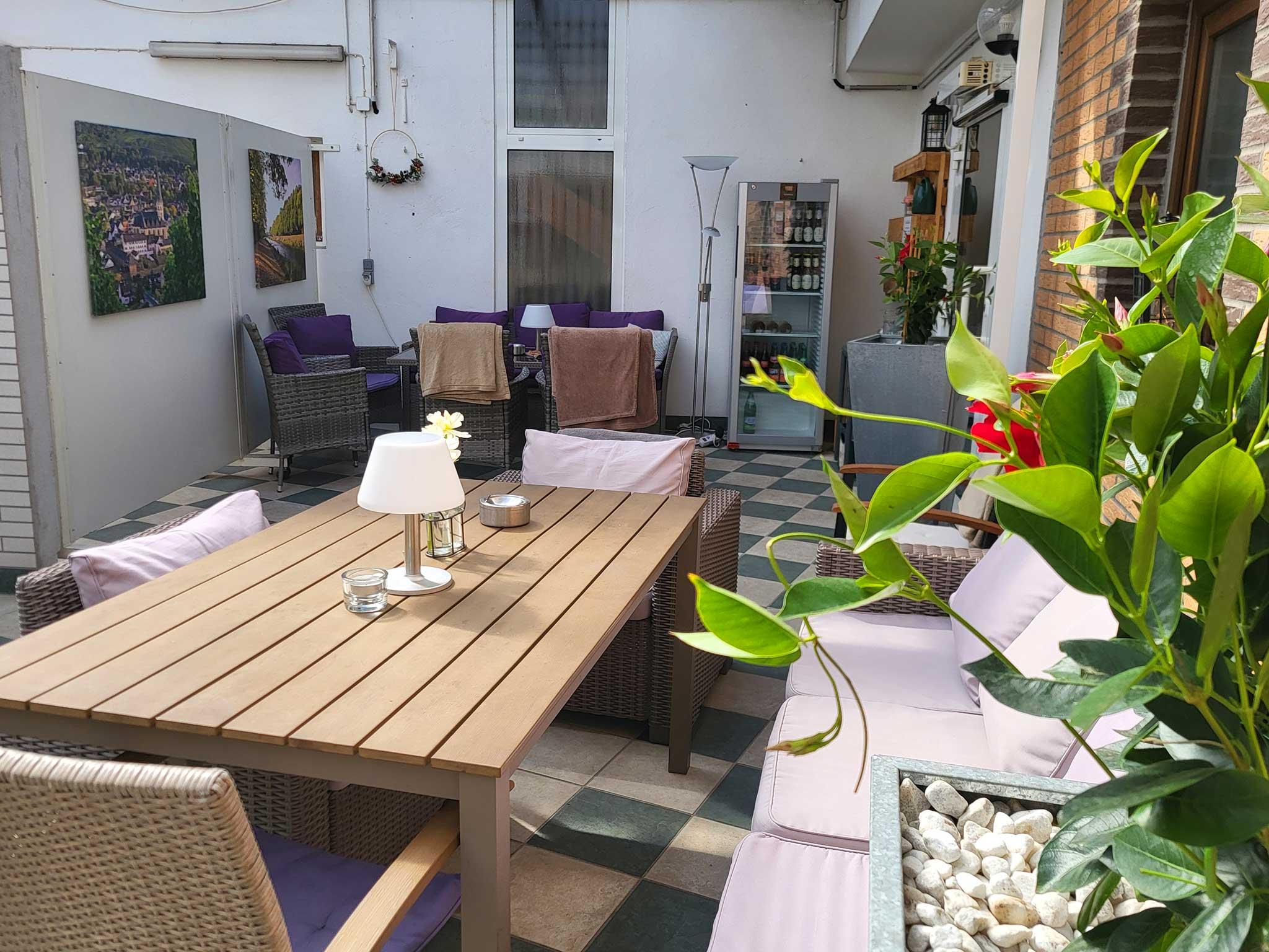 Unsere zentrumsnahe und ruhige Lage in der Ahrweiler Altstadt, am Rande der Fußgängerzone, bietet sich optimal zum Start Ihrer Ausflüge an. Der Ahr-Radweg, Rotweinwanderweg, Ahrsteig und auch viele weitere Sehenswürdigkeiten sind in wenigen Minuten fußläufig erreichbar. Unsere Zimmer sind alle mit Dusche/WC sowie TV ausgestattet. Im ganzen Haus steht Ihnen WLAN zur Verfügung und auf der zentralen, überdachten Terrasse, kann man auch die letzten Stunden des Tages gemütlich ausklingen lassen. Ein Parkplatz mit acht Parkplätzen ist direkt am Haus vorhande.