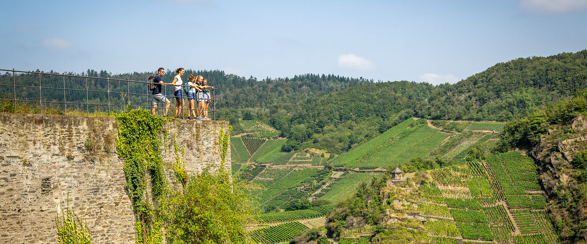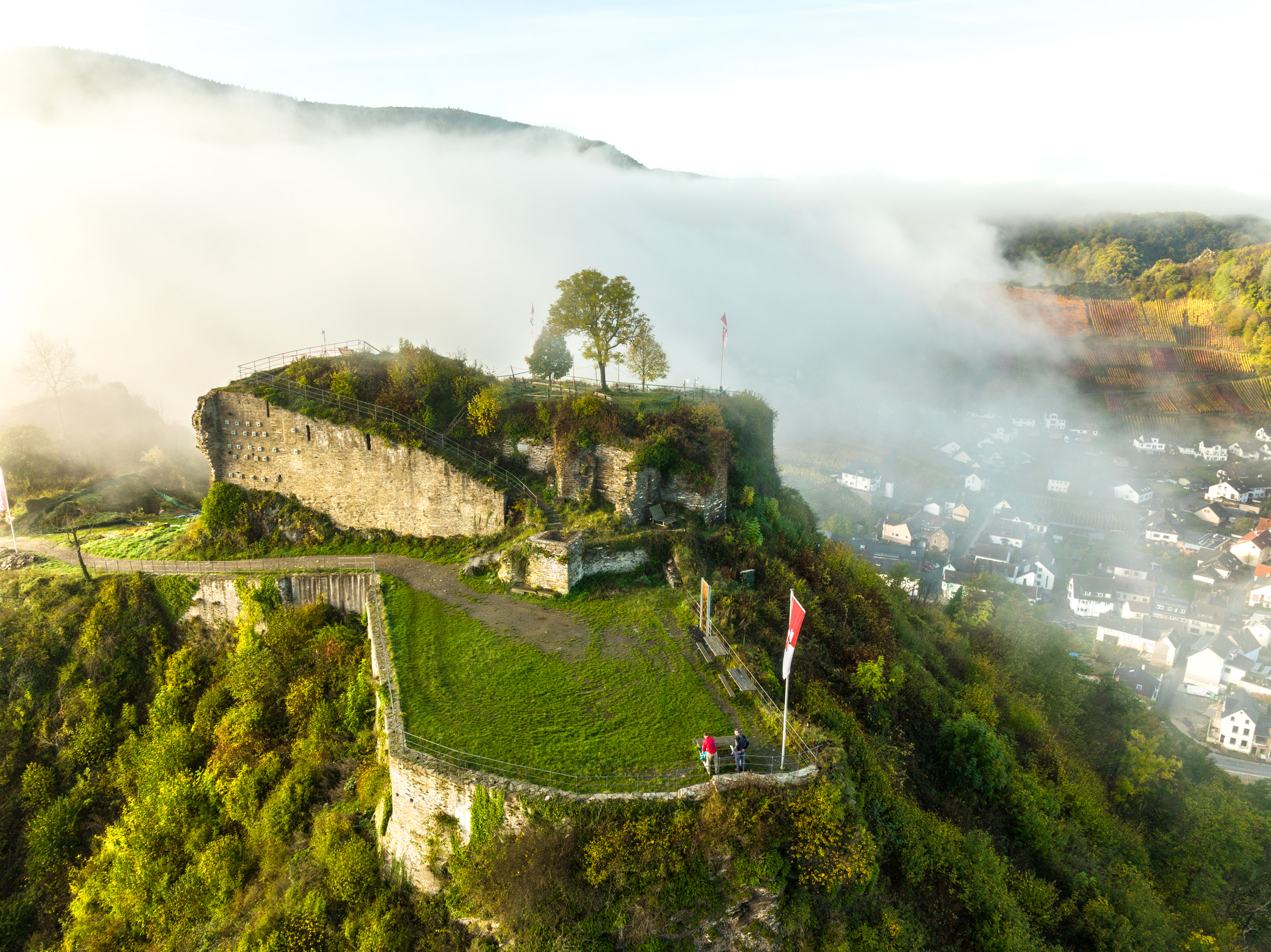 Von der Ruine der Saffenburg genießt man einen der schönsten Ausblicke im Ahrtal. Die Hütte unterhalb des Burggeländes ist an den Wochenenden und an allen Feiertagen im Mai, September und Oktober bewirtet.