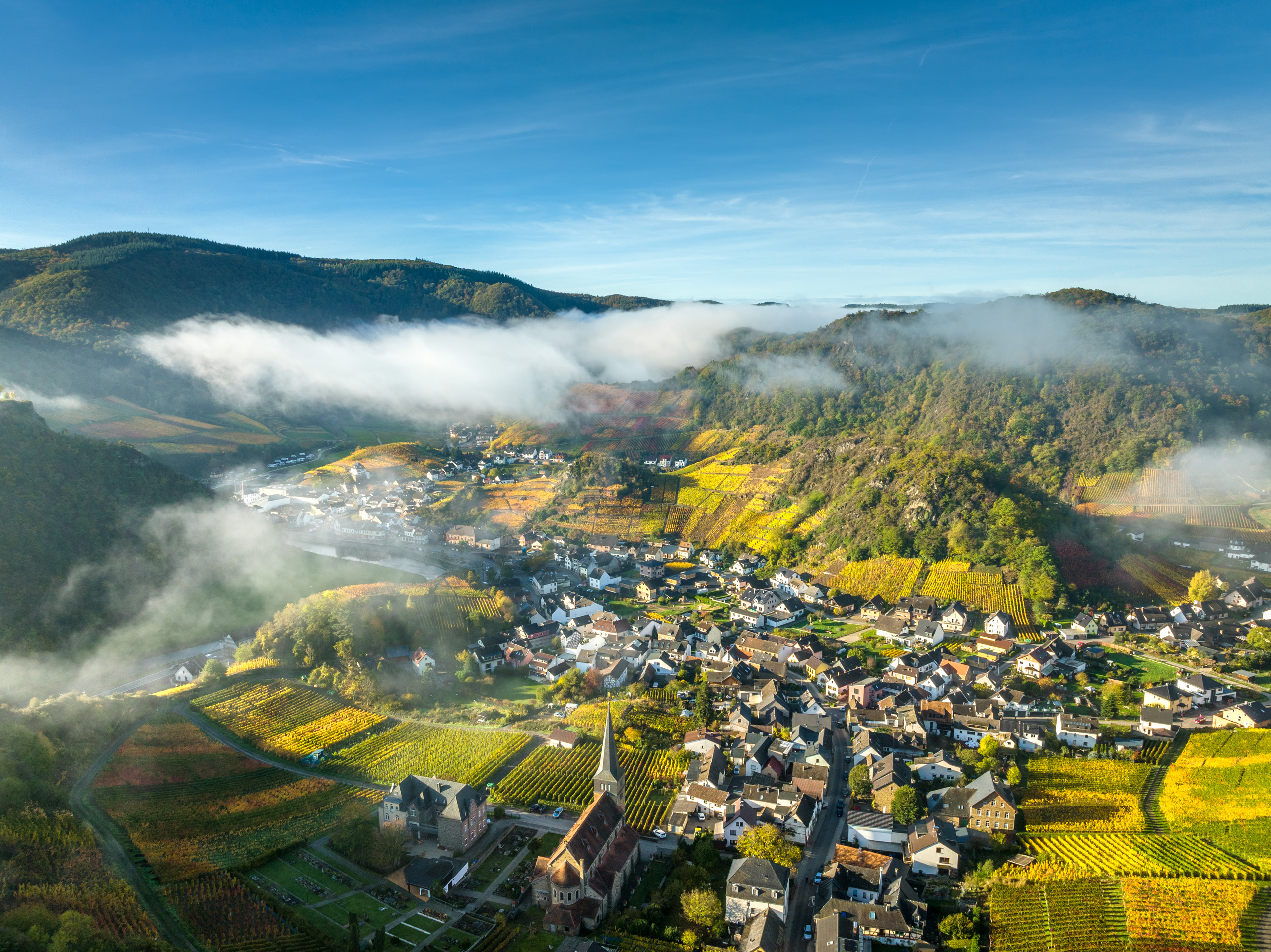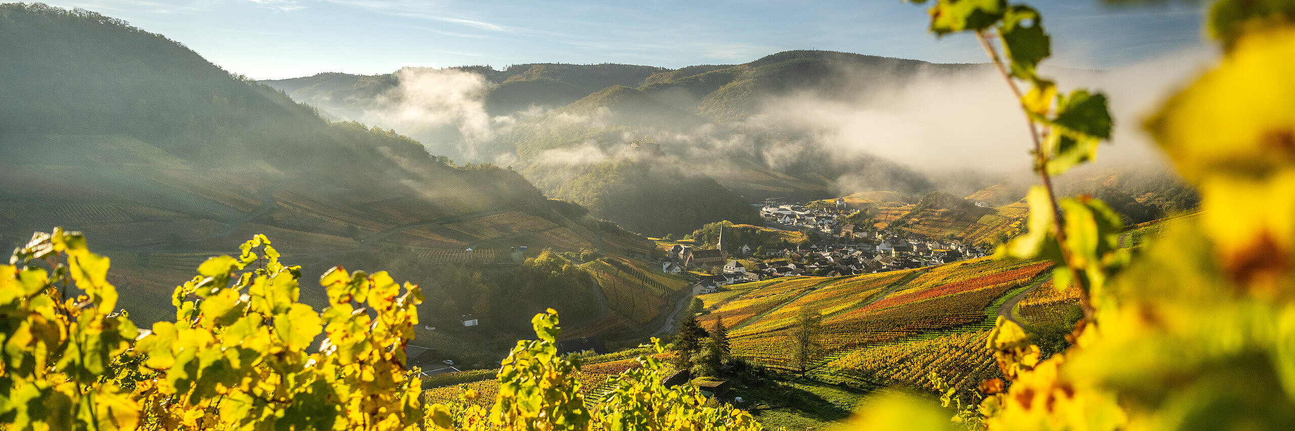 Eingebettet in die Weinberge, am Fuße der Burgruine Saffenburg, liegt Mayschoß. Ein besonderer Anziehungspunkt ist die älteste Winzergenossenschaft der Welt. Vom angrenzenden Rotweinwanderweg bietet sich eine faszinierende Aussicht auf den kleinen Ort, der einer der berühmtesten Weinorte des Ahrtals ist.