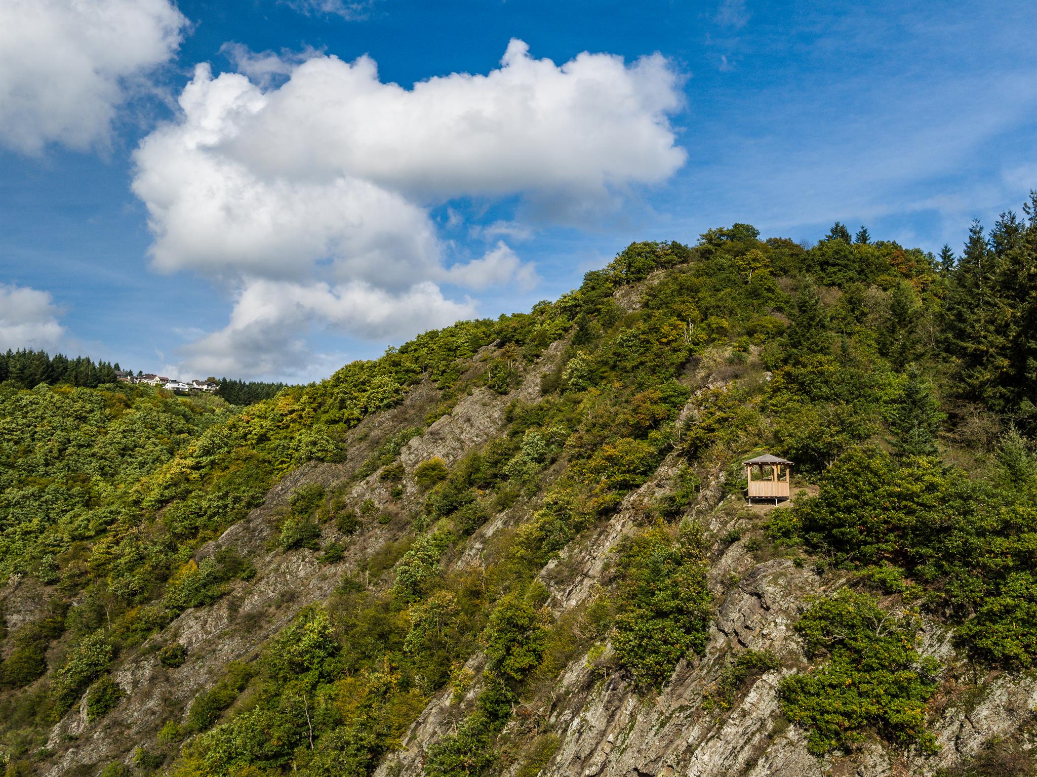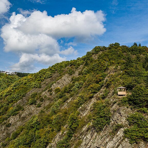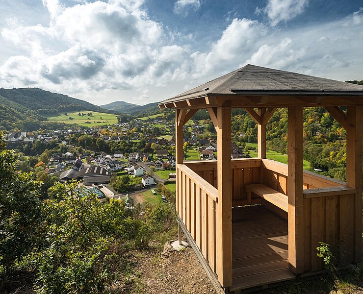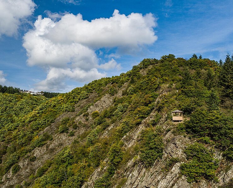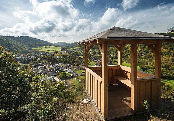 Die Spicher Ley ist eine markante Felspartie oberhalb von Schuld/Ahr und bietet eine wundervolle Fernsicht vom Aussichtspavillon.