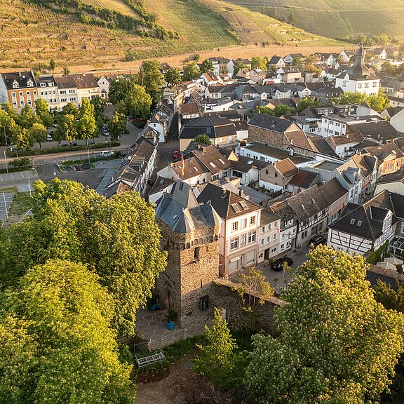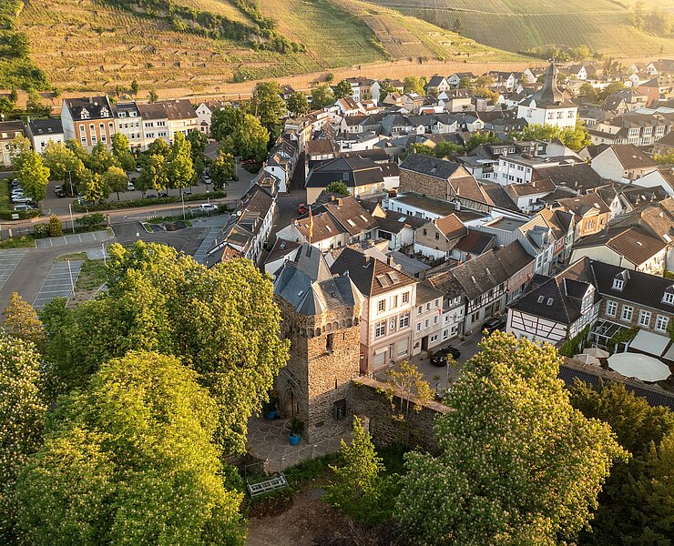 Das Obertor, auch als Oberes Tor bekannt, ist das westliche Stadttor und bildet einen markanten Eingangspunkt zur Altstadt von Ahrweiler. Es stammt aus dem 13. Jahrhundert und ist somit ein beeindruckendes Zeugnis der mittelalterlichen Baukunst. Der massive Turm aus Bruchsteinen und das hohe spitzbogige Tor verleihen dem Obertor eine imposante Erscheinung, die Besucher in eine vergangene Ära entführt.