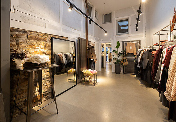 Kleider, Hosen, Blusen, Jacken und Accessoires fügen sich zu einem Sortiment, das sich sowohl für den Alltag als auch für besondere Anlässe eignet. Dabei liegt der Fokus stets auf tragbaren Designs, hochwertigen Materialien und einer Passform, die verschiedene Figurtypen berücksichtigt. Auch bei Schuhen und Taschen setzt die Boutique auf besondere Stücke mit dem gewissen Etwas.