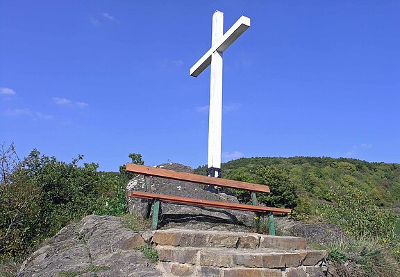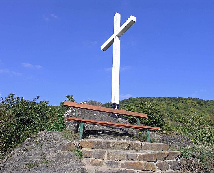 Meter hoch. Das ehemalige Stationskreuz am Kirchberg von Reimerzhofen erhebt sich auf einem Felsen unterhalb des Altenahrer Ecks.