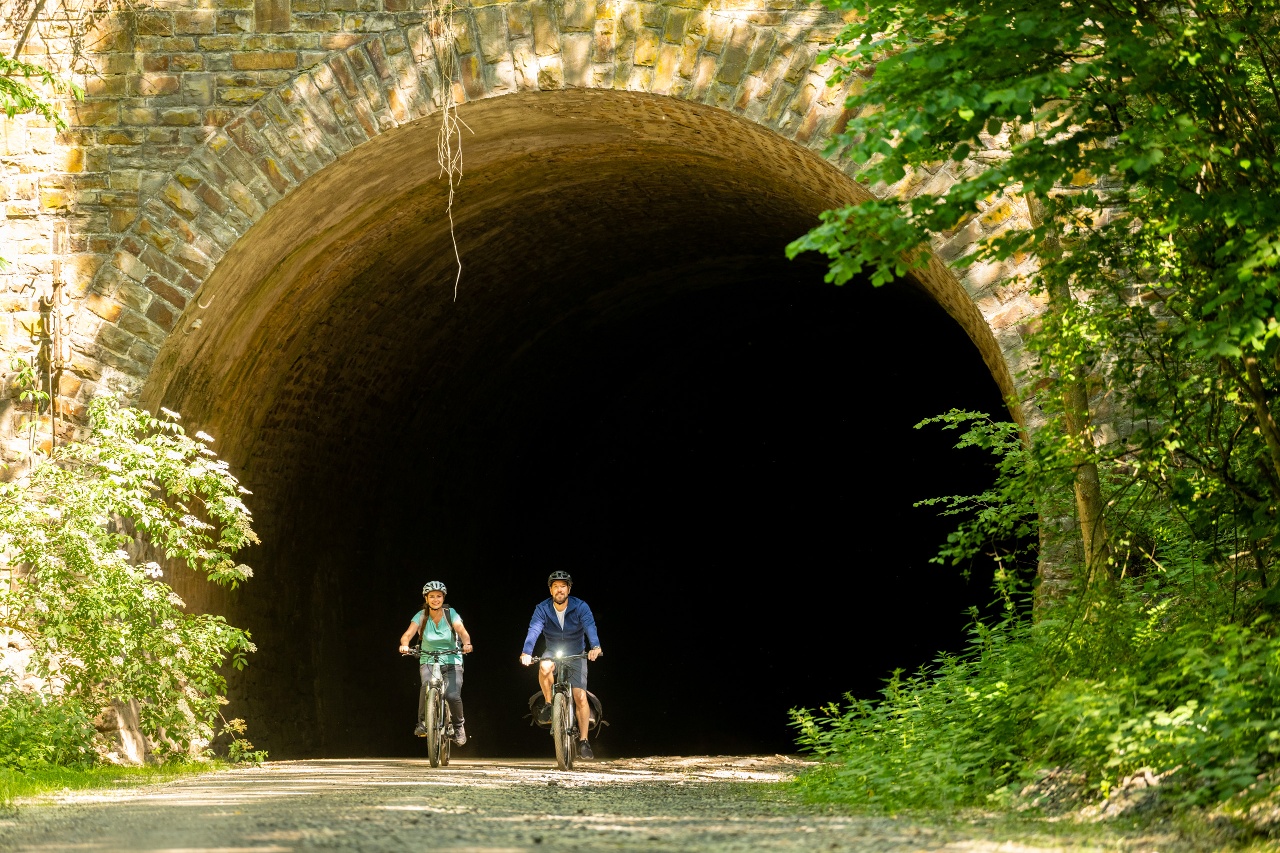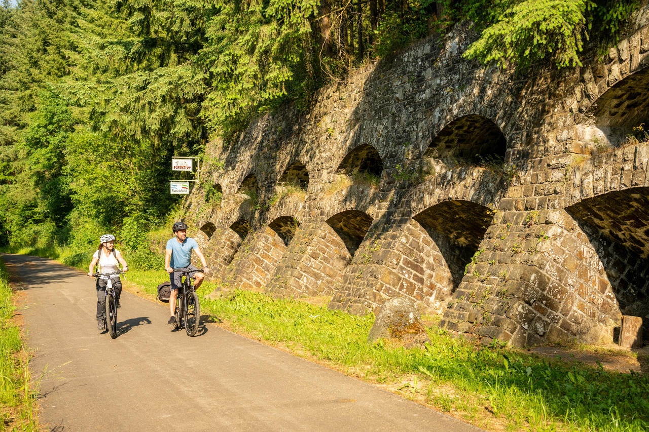 Vom mittelalterlichen Ort Blankenheim, dem Ursprungsort der Ahr, geht es vorbei an Wiesen und Wäldern, durch Tunnel und über Viadukte auf der alten Bahntrasse bis nach Ahrbrück an die Mittelahr.