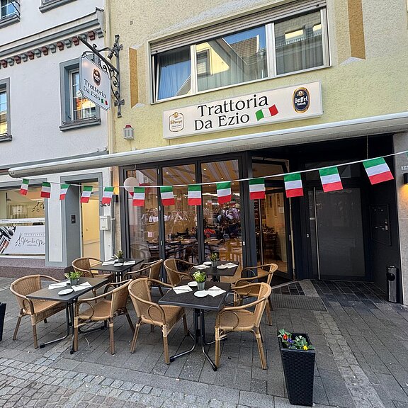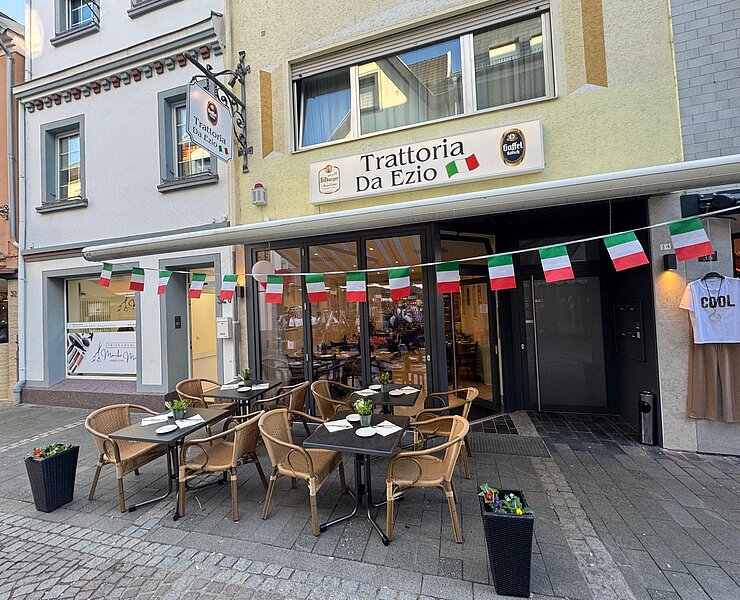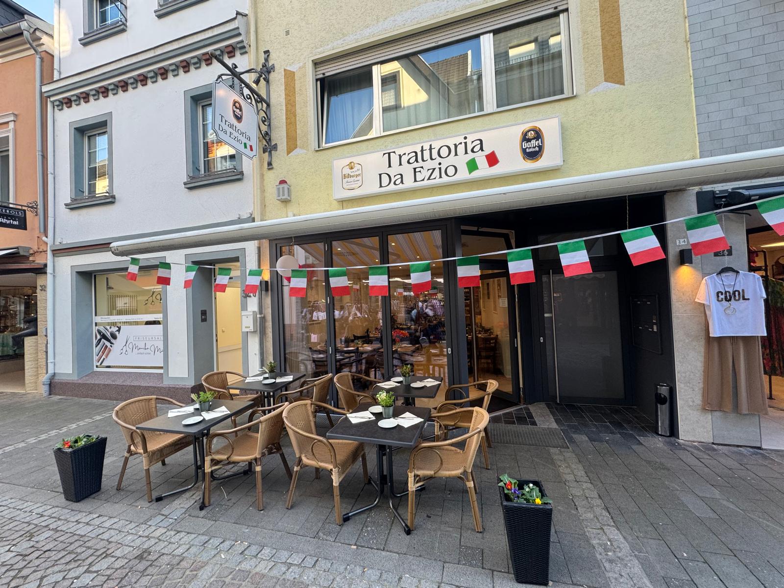 Die Trattoria da Ezio bringt ein kulinarisches Stück Italien in die mittelalterliche Altstadt von Ahrweiler. In gemütlich-familiärer Atmosphäre werden klassische italienische Spezialitäten wie Antipasti, authentische Pasta, frische Salate, knusprige Pizza und klassisches Tiramisu serviert. Dazu gibt es italienischen Wein sowie regionalen Dagernova Ahrwein.