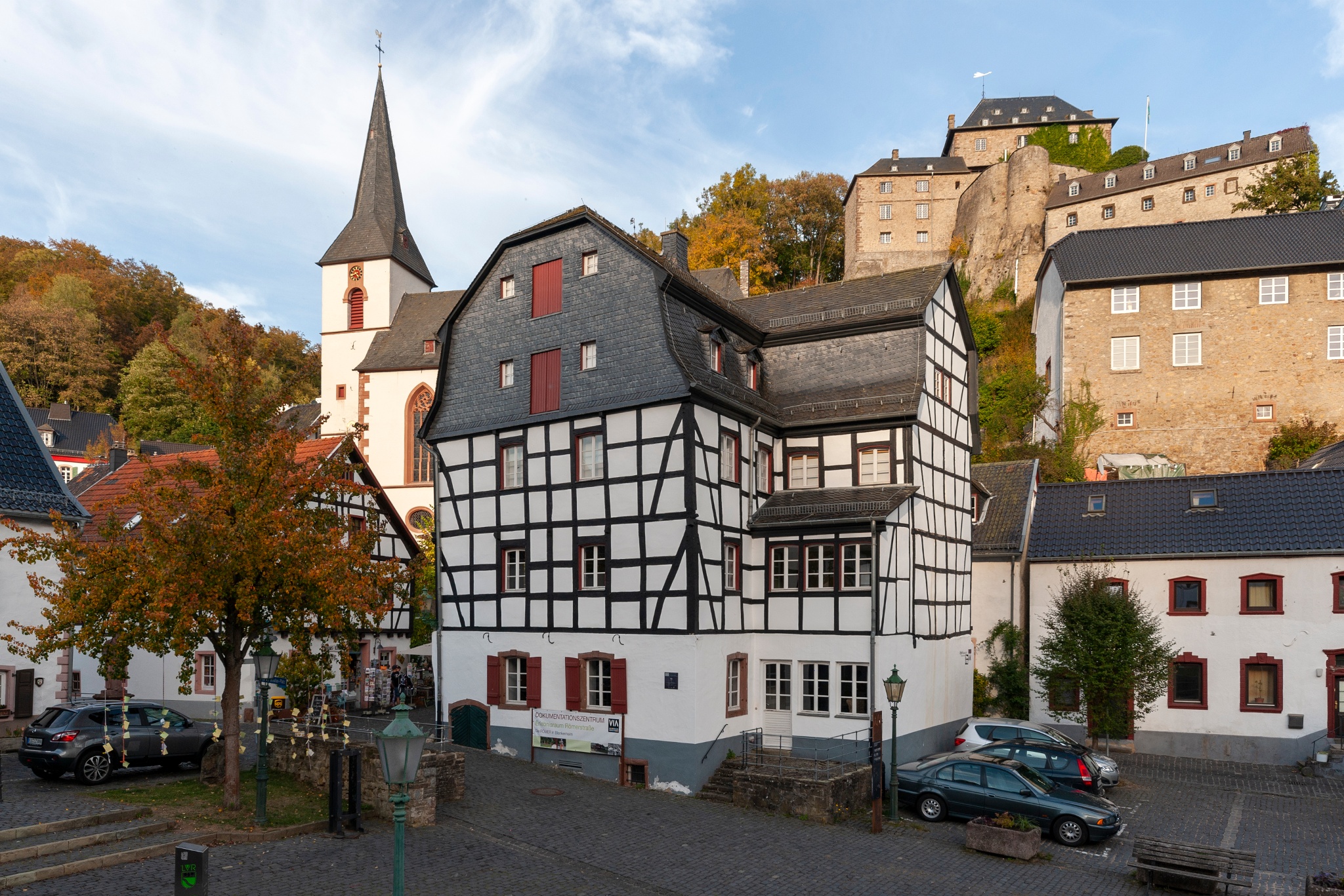 Es gibt kostenfreie Parkplätze auf dem "Stellplatz an der Weiherhalle P3" in der Koblenzer Straße, 53945 Blankenheim.