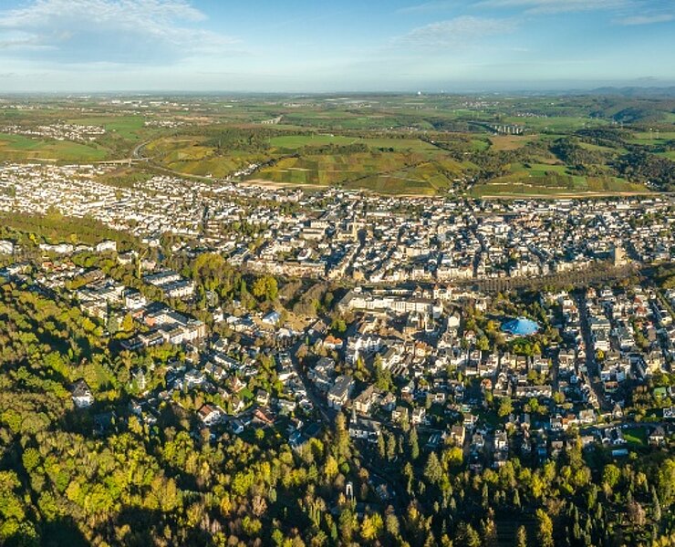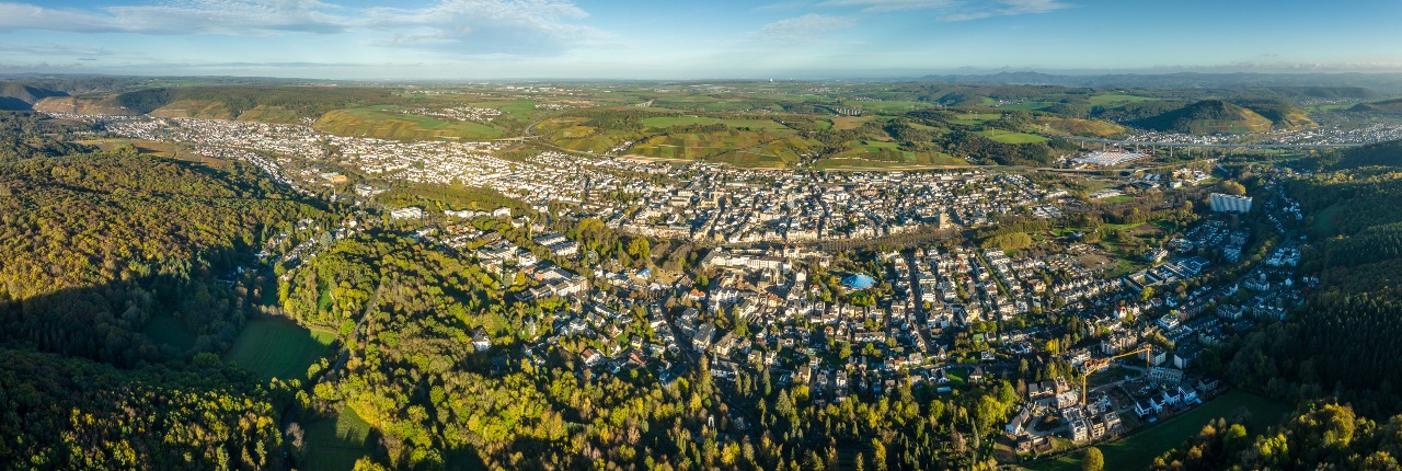 Die Differenzierung der Belastungsstufen ist farblich gekennzeichnet und entspricht dabei den nachfolgend genannten Belastungen. Der Start aller Wege ist am Kurpark Bad Neuenahr.