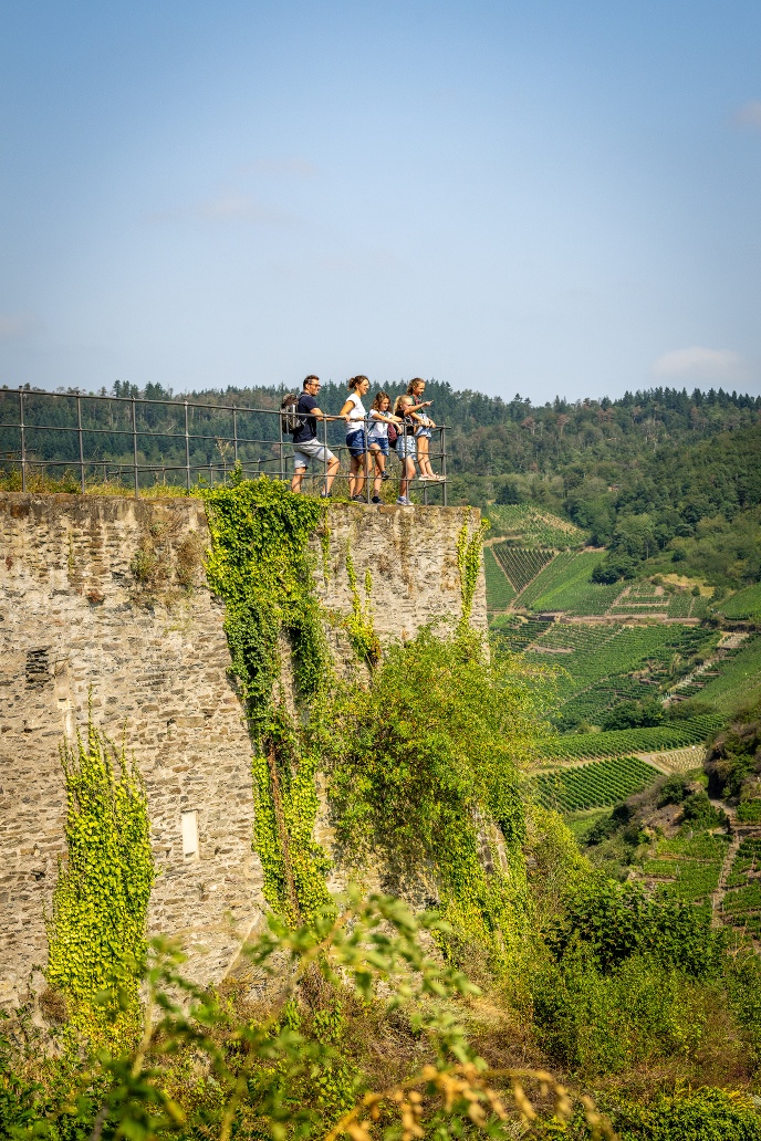 And the tour lives up to its name: the Saffenburg can be seen from almost all vantage points.The hike leads to spectacular views: from the Saffenburg, the Schwedenkopf, the Ümerich and the Mohrenkopf.A challenging loop that provides new surprises around every bend in the trail.A highlight right at the beginning: the ruins of the Saffenburg. From the plateau you have a magnificent 360° panoramic view of the course of the river Ahr and the surrounding villages.You can stop for refreshments along the way at the Saffenburg refuge, in the local restaurants, at the winegrowers and wine taverns in Mayschoß and in Rech.The Saffenburg circuit is signposted with its own signpost.