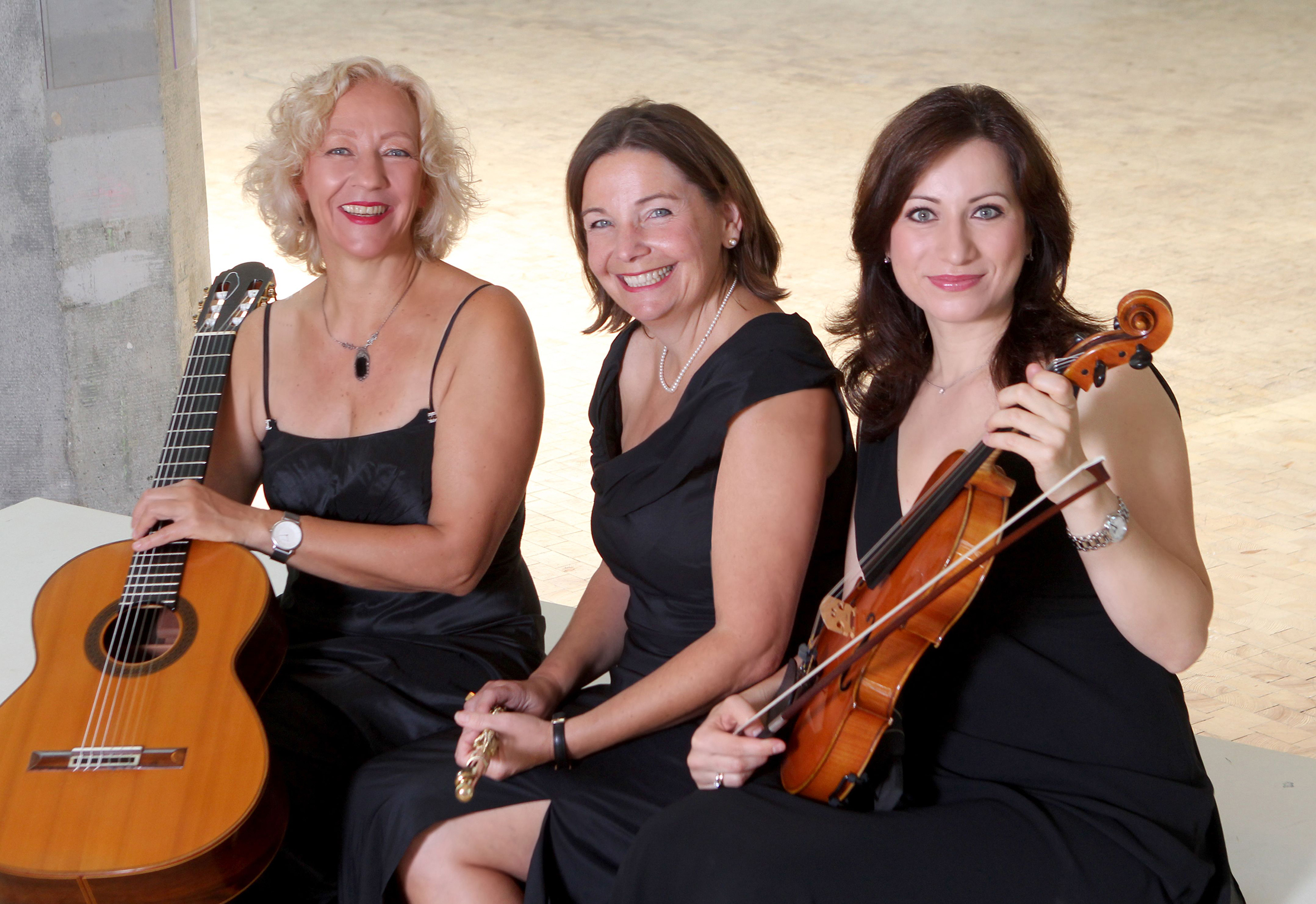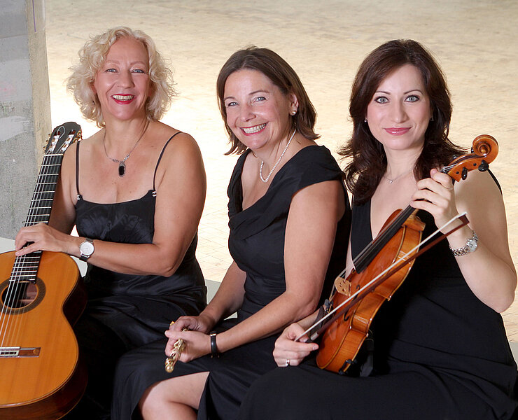 Depuis sa création par la guitariste Andrea Förderreuther, le trio composé de la flûtiste Christina Singer et de l'altiste Lydia Bach suscite l'enthousiasme avec des programmes originaux. Ensemble, les trois artistes joueront un concert qui jettera des ponts entre les époques, les styles et les continents et qui mettra en valeur de manière impressionnante les possibilités acoustiques de cette formation exceptionnelle.