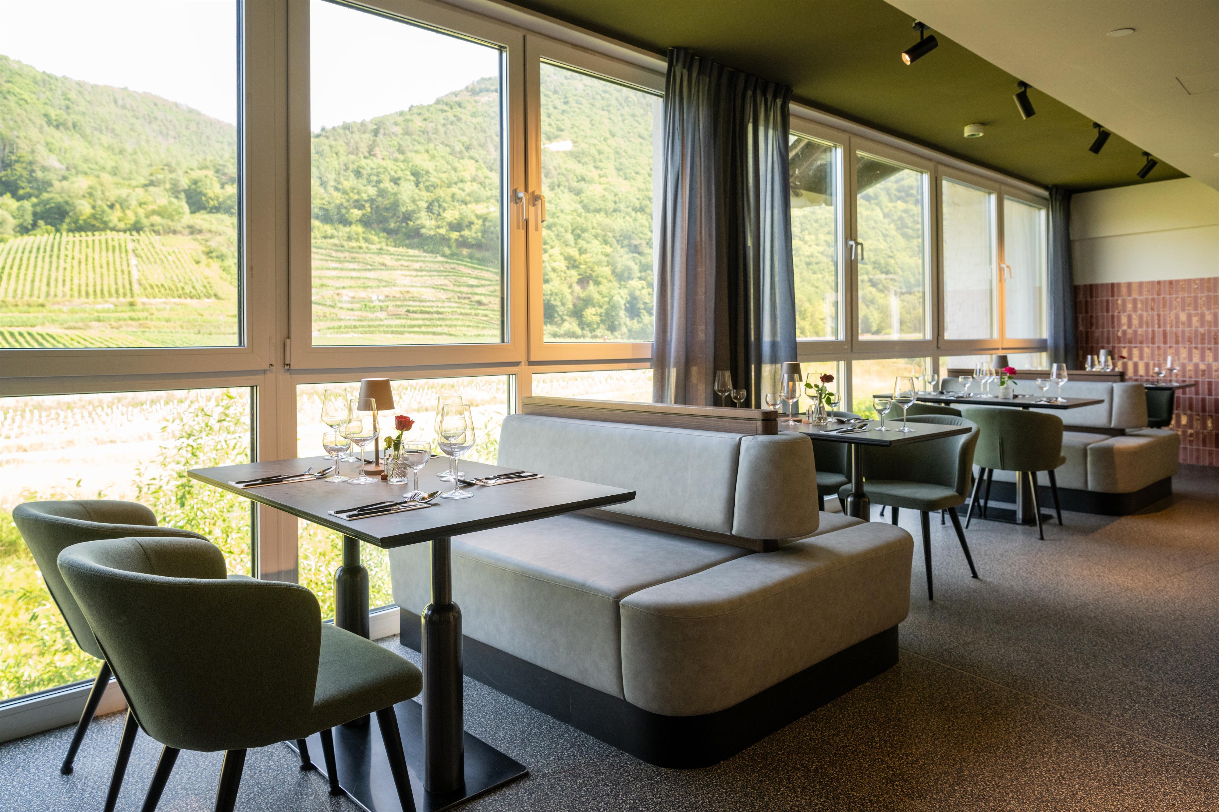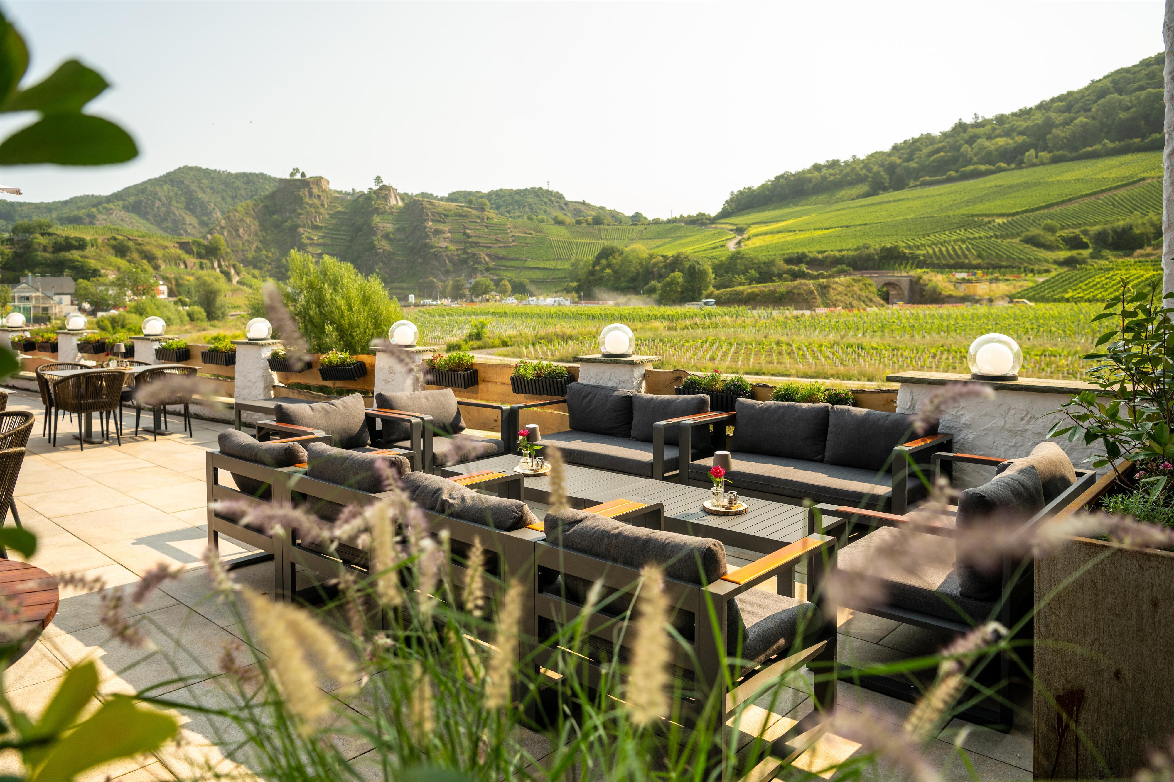 In Mayschoß, een van de bekendste wijnplaatsen van het Ahrdal, straalt het May Hotel na de heropening in nieuwe glans. De volledig gerenoveerde, lichtovergoten kamers combineren modern comfort met een gevoel van geborgenheid. Het kloppende hart van het huis is het panoramaterras met vrij uitzicht over de wijngaarden, een bijzondere plek voor ontspannen uren. Een stijlvolle bar en een open haard zorgen voor sfeervolle momenten, terwijl de centrale ligging korte wegen naar wandelpaden, wijnhuizen en culturele hoogtepunten mogelijk maakt. Voor zakelijke aangelegenheden is er een moderne vergaderzaal met volledige uitrusting beschikbaar.