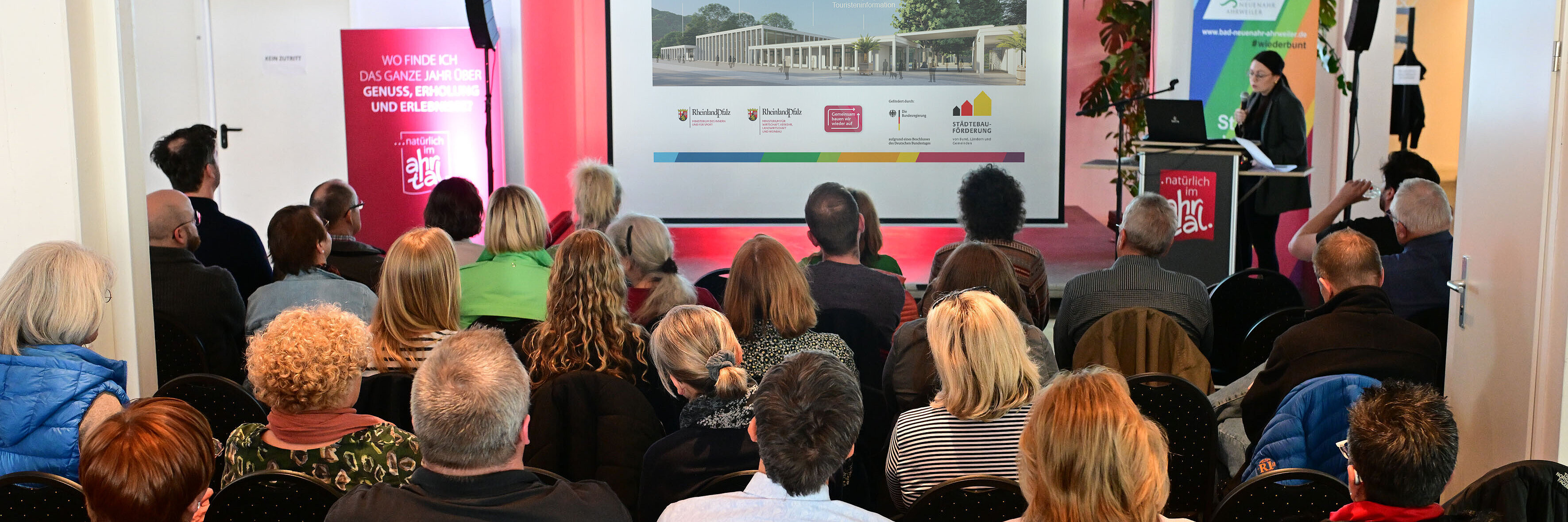 Am 11. April hatte die Ahrtal und Bad Neuenahr-Ahrweiler Marketing GmbH in Kooperation mit der Aufbau- und Entwicklungsgesellschaft Bad Neuenahr-Ahrweiler mbH die Gästeführerinnen und Gästeführer zu einem Info-Abend eingeladen, der sich dem Wiederaufbau im Stadtgebiet Bad Neuenahr-Ahrweiler widmete. Veranstaltungsort war die Kleine Bühne im Kurpark.